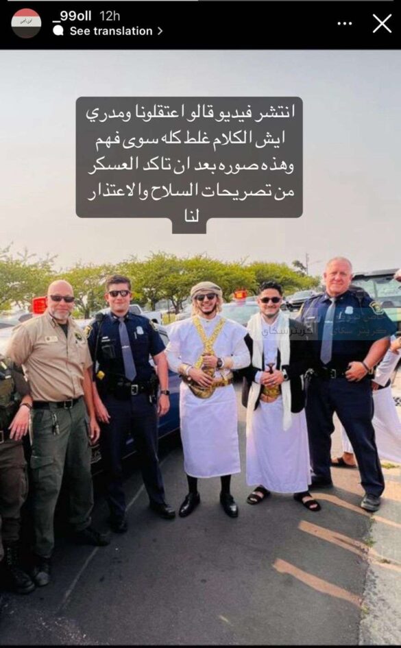 أهم الاخباراخبار منوعةاختيار المحررالشرق الاوسطاليمن الكشف عن مصير العريس اليمني المعتقل بأمريكا by donia يونيو 7, 2023 written by donia يونيو 7, 2023 263 كشفت مصادر عن الافراج عن العريس اليمني التي تم احتجازه بأمريكا لدقائق. وقالت المصادر عقب إيقاف سيارة العريس واعتقاله بسبب وجود سلاح لديه اخرج العريس تصريح السلاح. َاختتم : تم الاعتذار منه من قبل الشرطة على الفور وإطلاق سراحه. يذكر ان إعتقال الشاب أصبح ترند على مواقع التواصل الاجتماعي 0 comments 0 FacebookTwitterPinterestEmail donia previous post شاهد بالوثيقة .. البنك المركزي اليمني يعتمد سعر جديد للدولار next post الشركة اليمنية للإتصالات تعلن عن مفاجأة جديد You may also like فنانون يتعهدون بمقاطعة مؤسسات إسرائيل السينمائية بسبب غزة سبتمبر 9, 2025 عضو مجلس الشرف الأعلى حسن الكاهلي يكافئ الفريق... سبتمبر 6, 2025 الائتلاف الوطني للنساء المستقلات يطلق مبادرة “حقيبة العلم”... سبتمبر 1, 2025 أسرة تحرير “كاف بوست” تهنئ الشاب احمد منير... أغسطس 28, 2025 تكميم معدة لطفلة في مصر.. جدل طبي وتحقيق... أغسطس 28, 2025 دعوة لحضور زفاف المهندس احمد الكاهلي أغسطس 27, 2025 بعد غضب ترامب.. مطاعم “كراكر باريل” تعود لشعارها... أغسطس 27, 2025 توقعات بأمطار خفيفة وغزيرة تضرب عدن اليوم وغدا أغسطس 22, 2025 أغسطس 21, 2025 حادث مأساوي يهز مصر.. وفاة طفل بسبب “وجبة... أغسطس 19, 2025