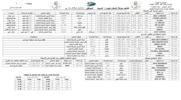 السفن المتوقع وصولها :