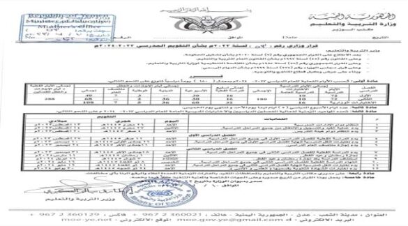 وأكد وزير التربية والتعليم الأستاذ طارق سالم العكبري، على جميع الإدارات التربوية والتعليمية في جميع المحافظات، بالالتزام والتقيد والتنفيذ بما ورد في التقويم المدرسي للعام الدراسي الجديد 2023/2024.