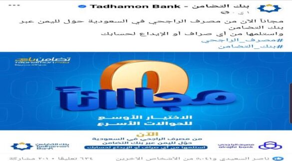 وكان بنك التضامن أعلن أن حوالات المغتربين مجاناً من مصرف الراجحي في السعودية عبر بنك التضامن في اليمن.