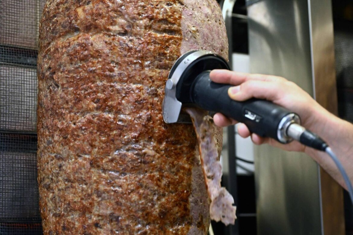 وكان ياغجي يقف أمام شيشَي «دونر» عموديين دوّارَين، أحدهما من لحم الديك الرومي المهدَّد أيضاً بالطلب التركي.