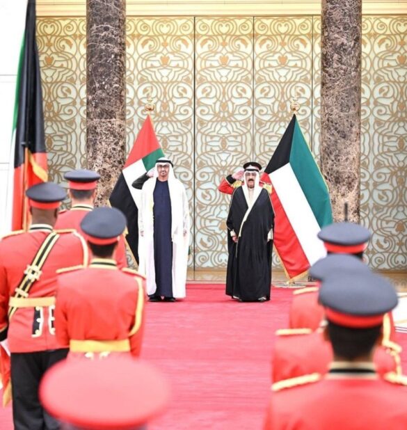 كان رئيس دولة الإمارات العربية المتحدة الشيخ محمد بن زايد آل نهيان، قد وصل صباح الأحد إلى الكويت في زيارة دولة، حيث كان أمير الكويت الشيخ مشعل الأحمد الصباح، وولي العهد الشيخ صباح خالد الحمد الصباح، في مقدمة مستقبليه.